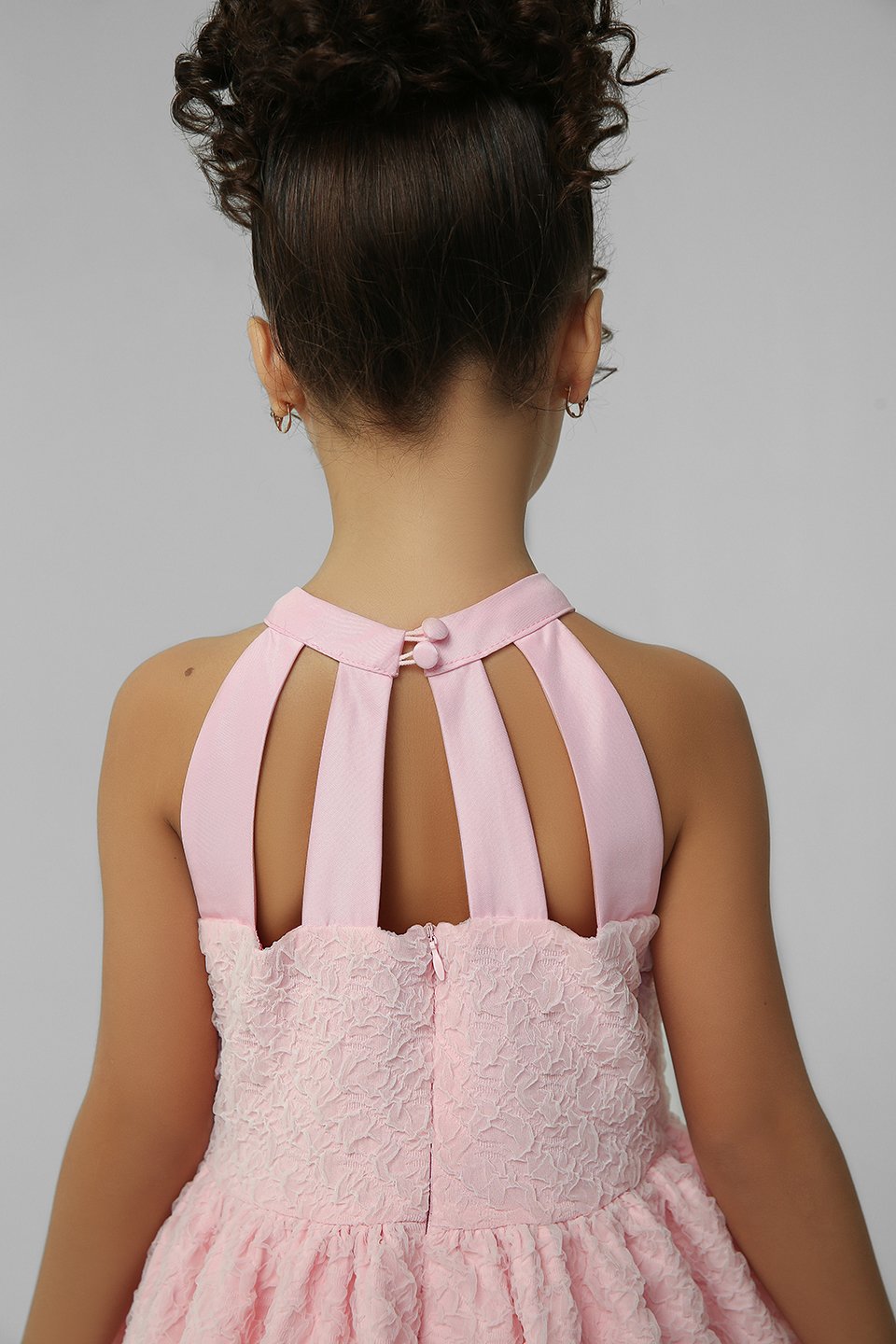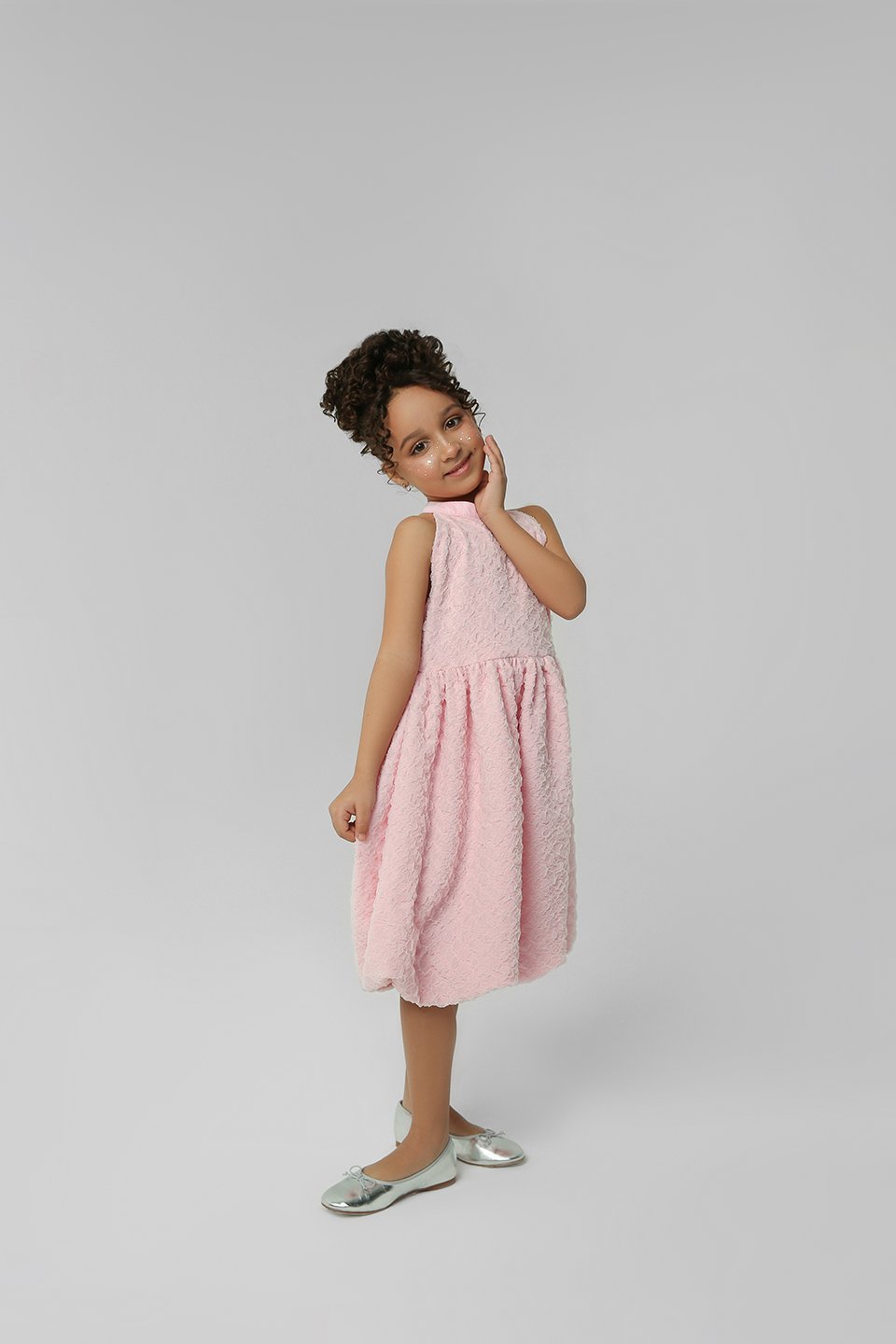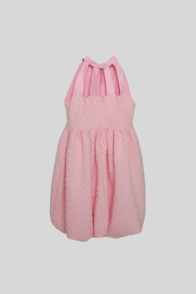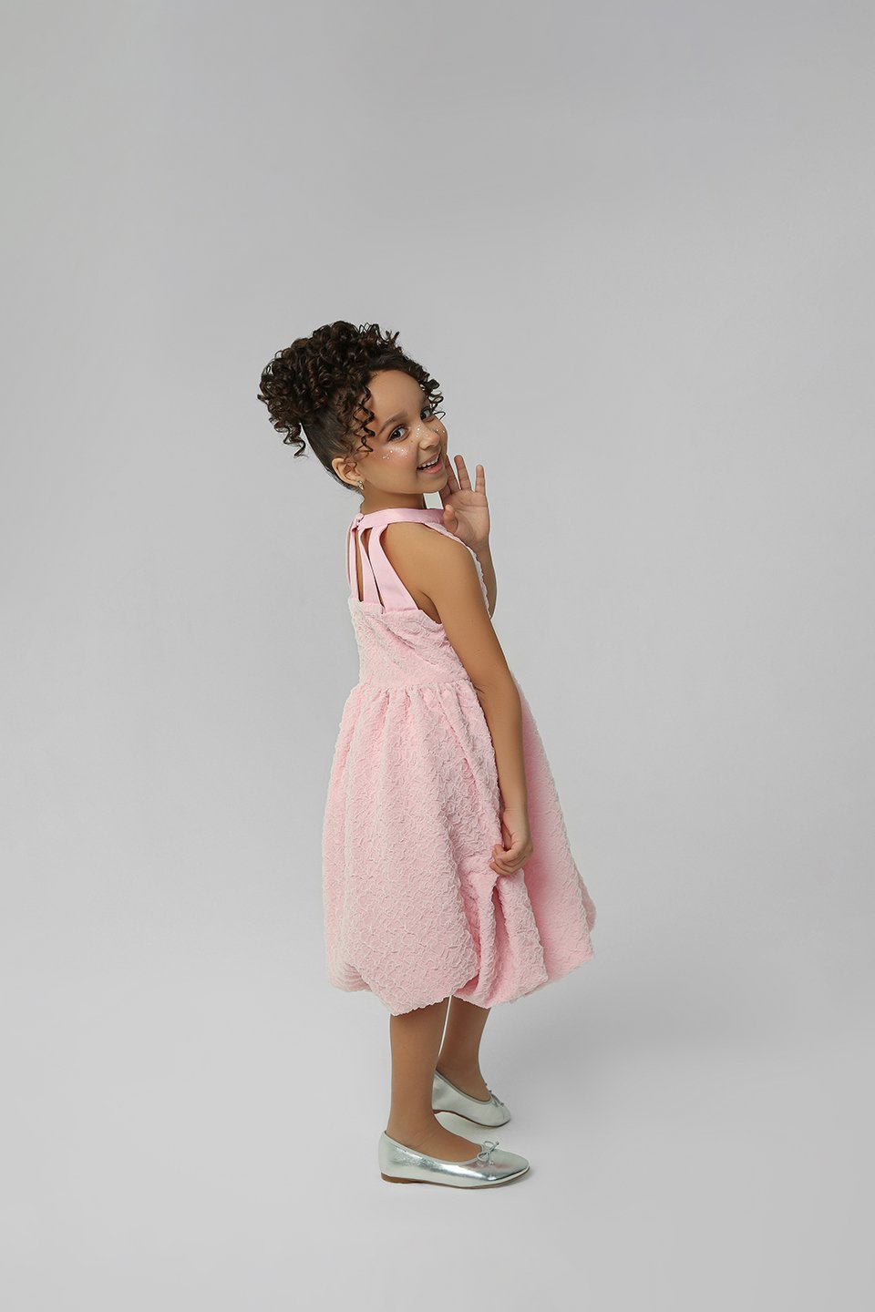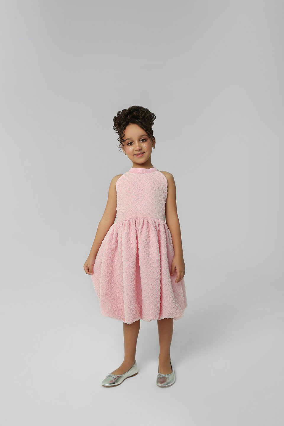 • نوع المنتج: فستان وردي بقصة البالون بدون أكمام برقبة ضيقة مع شرائط في الظهر