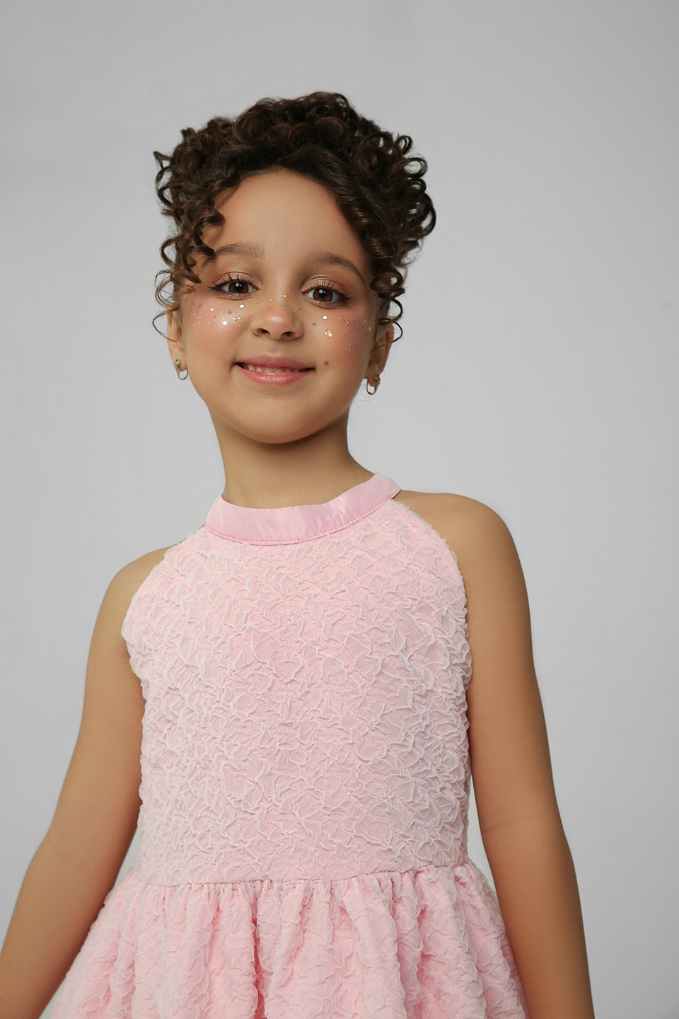 يتوهّج الفستان الوردي كلؤلؤة صغيرة ترقص على وهج اللحظة،